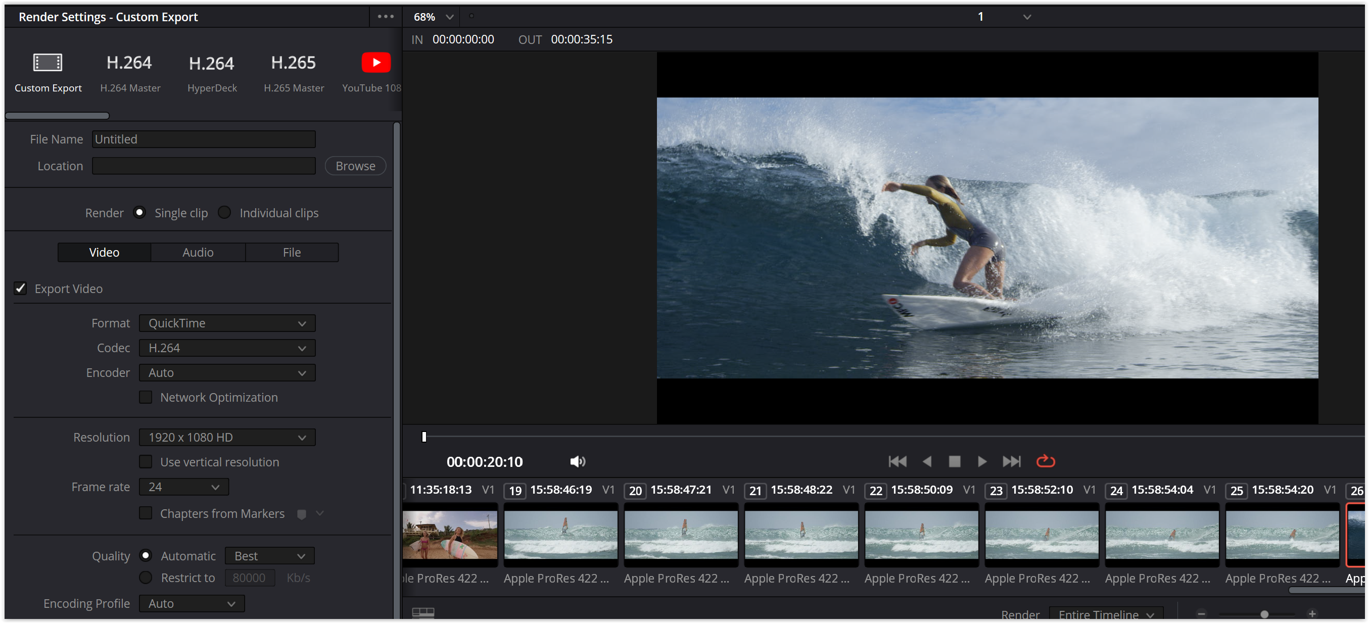 Analisi del flusso di lavoro su Davinci Resolve per l'ottimizzazione e la creazione di un export in DCP.