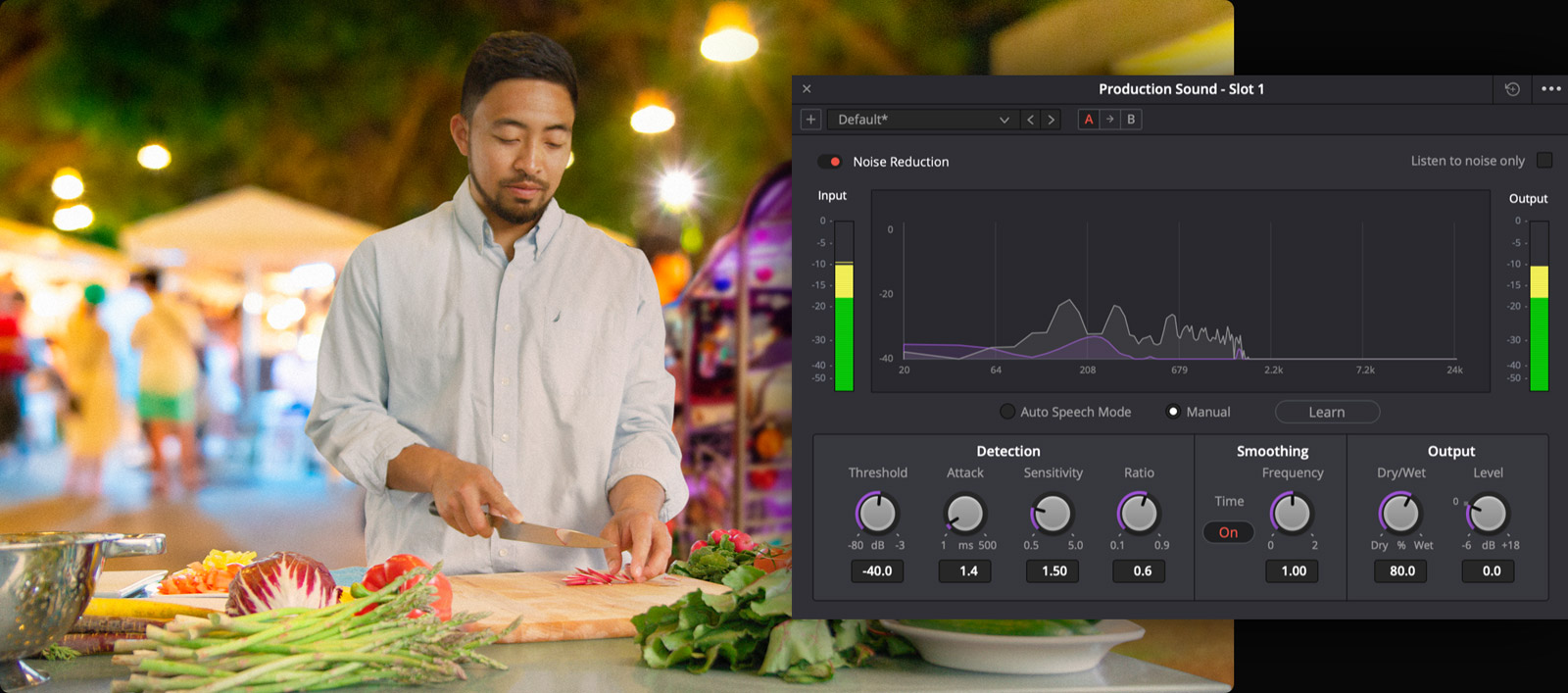 De-Esser, De-Hummer, Dialogue Processor, Dialogue Leveler, Noise Reduction, Voice Isolation