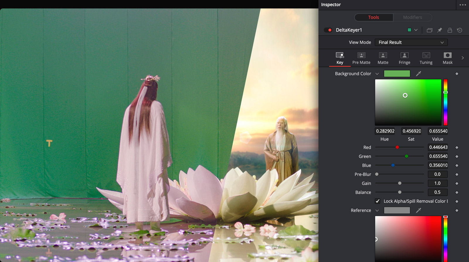 Come fare compositing in Color Page, utilizzare il Qualifier 3D per la rimozione del verde, Matte Finesse e tecniche di Despill