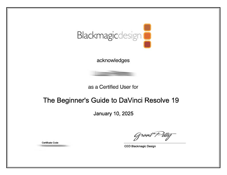Questo Corso segue il nuovissimo Training Ufficiale Blackmagic Beginner's Guide to Davinci Resolve 19 e fa parte del percorso di formazione mirato alla certificazione end-user (riconosciuta a livello mondiale) su Davinci Resolve 19.