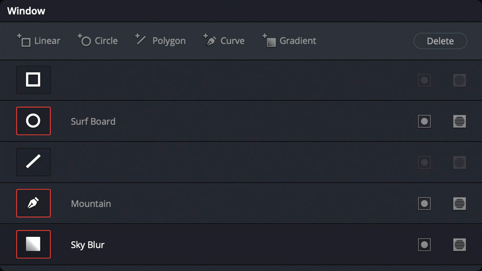 Disegnare una maschera, combinare le power window, gradient, power curve & bezier, mask control, preset.